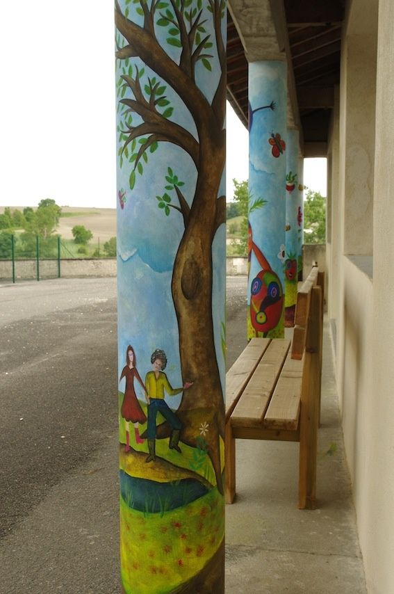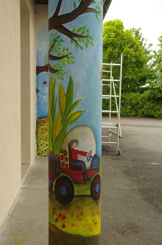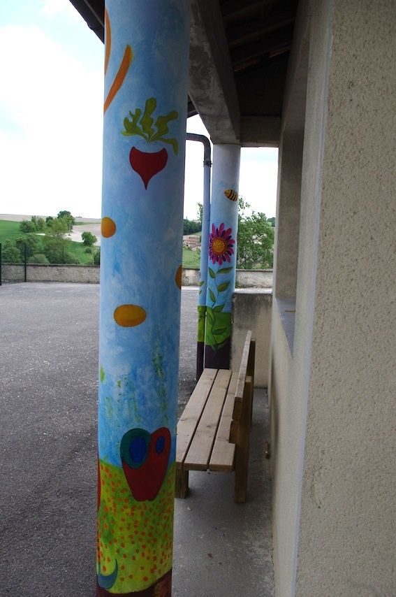 Le projet de Manue, Directrice et maitresse de l'école maternelle de Salle-Lavalette, en Charente, était de donner un peu de couleur à la cours de récrée, tout en travaillant autour du thème du jardin, de la campagne et de Catherine et Hervé, deux jeunes "travailleurs de la terre", bien connus des enfants...